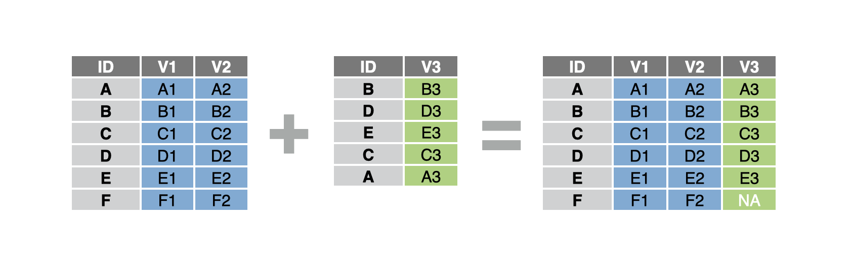 left_join(data_2, by = "id")Join by multiple variables