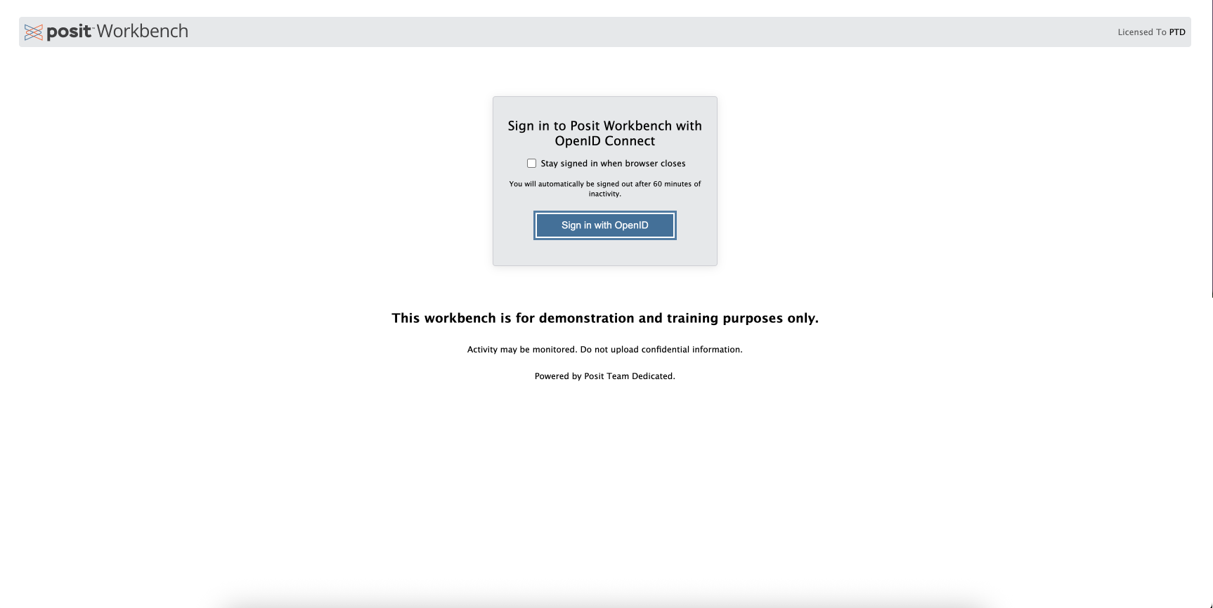 Open dev.academy.posit.team in your browser. Click Sign in with OpenID.