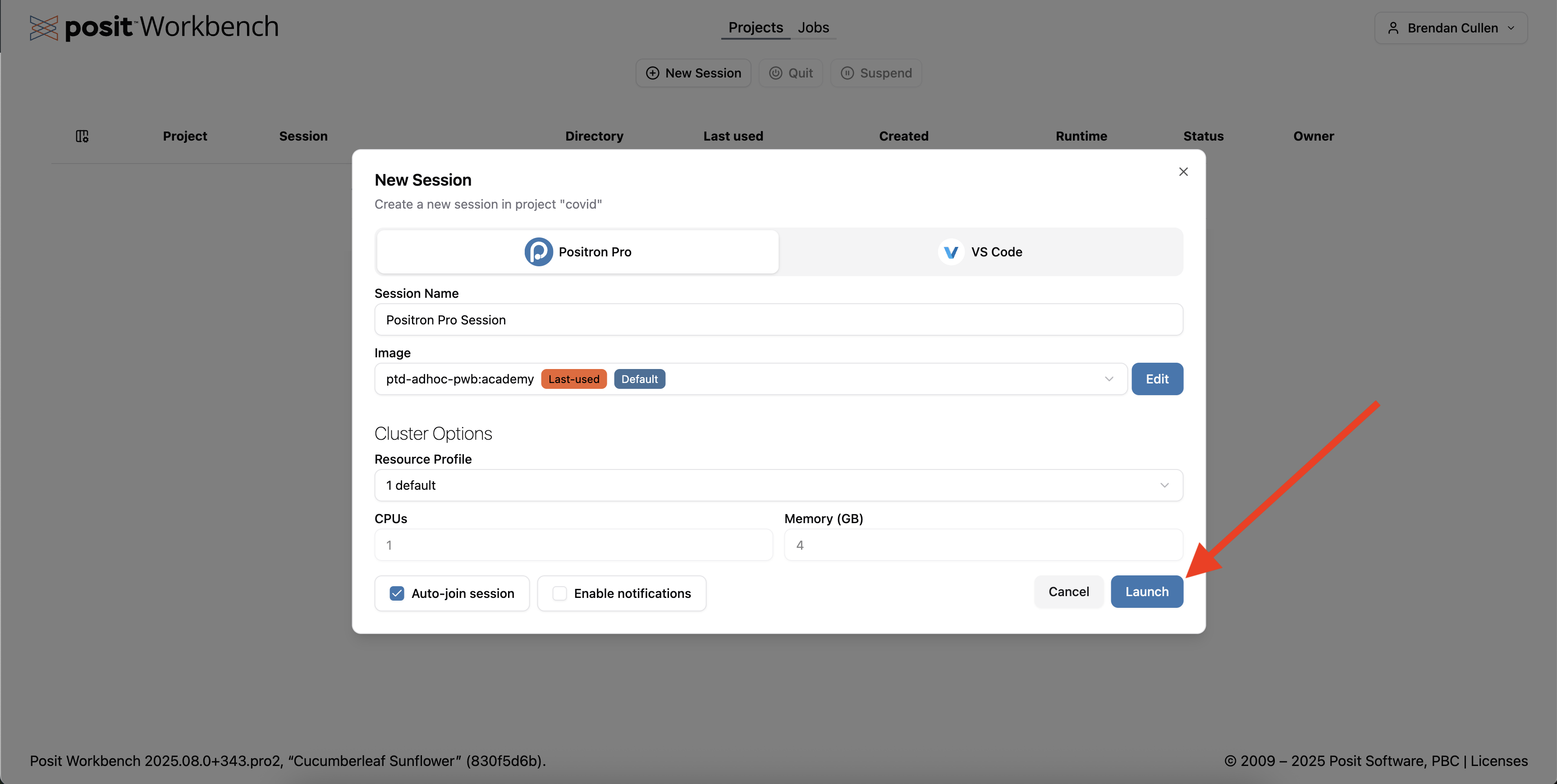 1 default. - You can leave the Session Name as the default (“Positron Pro Session”) or change it if you prefer.
